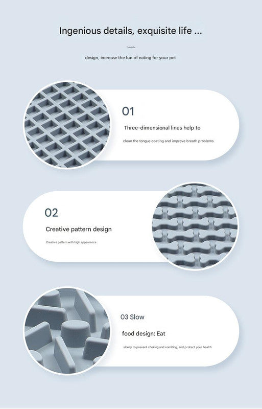 Made from food-grade silicone, this mat is safe for your pet and easy to clean. Its flexible design allows for convenient storage, and the durable material withstands regular use. Perfect for dogs of all sizes, this slow feeder mat supports healthy eating habits while providing mental stimulation, making it an excellent addition to your pet's routine.